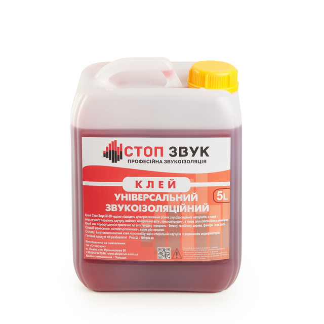 Звукоізоляційний клей СтопЗвук М-20 чудово підходить для приклеювання різних звукоізоляційних матеріалів, а саме :